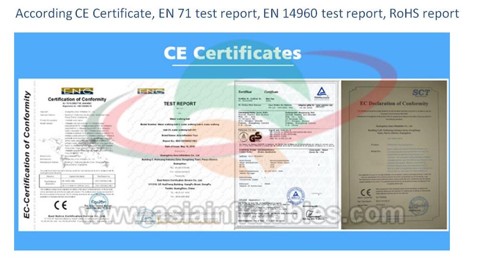 All of our inflatable Water Toys are made of Commercial Grade 0.9mm PVC Tarpaulin Material, which have 3 layers (PVC + Strong Net + PVC) , with abrasion resistance, tear resistance, water and fire protection, and durable features.